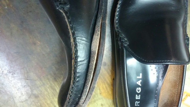 お客様は履きたいそうなのですが、アッパーもソールも石の様にカッチカチで…